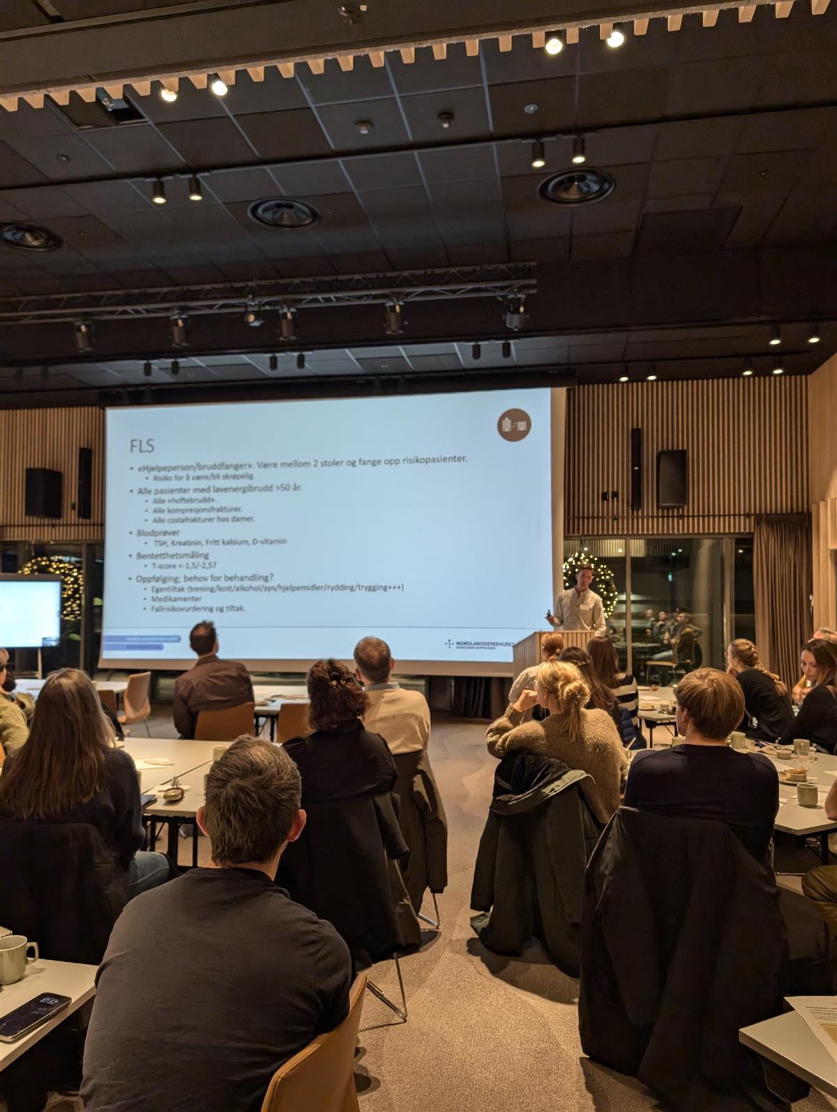 Henrik Hoven ga en krasjkurs i arytmidiagnostikk. «Går det fort, er det smalt eller bred og er det uregelmessig». Kardiologi er enkelt! «Osteporose er starten på skrøpelighet» meinte Christer Kjærvik som klarte å få aller leger i salen til å gå hjem og finne alle pasienter med brudd som skal ha Aclasta.